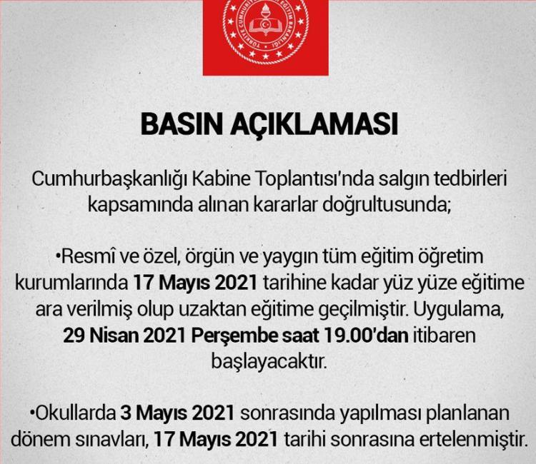 Okullar ne zaman kapanacak 2021?1 haziran 2021'e kadar sürecek bu dönem sonrasında atılacak adımlar milyonlarca kişinin gündeminde yer alıyor. Yaz tatili ne zaman başlayacak 2021? Tam kapanma tedbiri ile birlikte yüz yüze eğitime ara verilerek yeniden uzaktan eğitime geçildi. Okulların 2.dönem ne zaman biteceğine ilişkin açıklama yapıldı. Yüz yüze eğitime geçilmesinin ardından 2021 meb takvimi peki okullar ne zaman kapanacak?